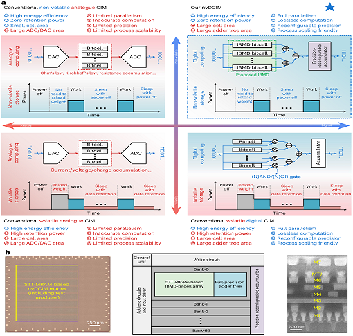 近日,南方科技大学深港微电子学院林龙扬课题组在非易失存算一体芯片领域取得重要研究进展。团队基于40纳米CMOS及STT-MRAM工艺,提出并流片验证了首个精度无损、全并行的数字式非易失存算一体芯片(n......